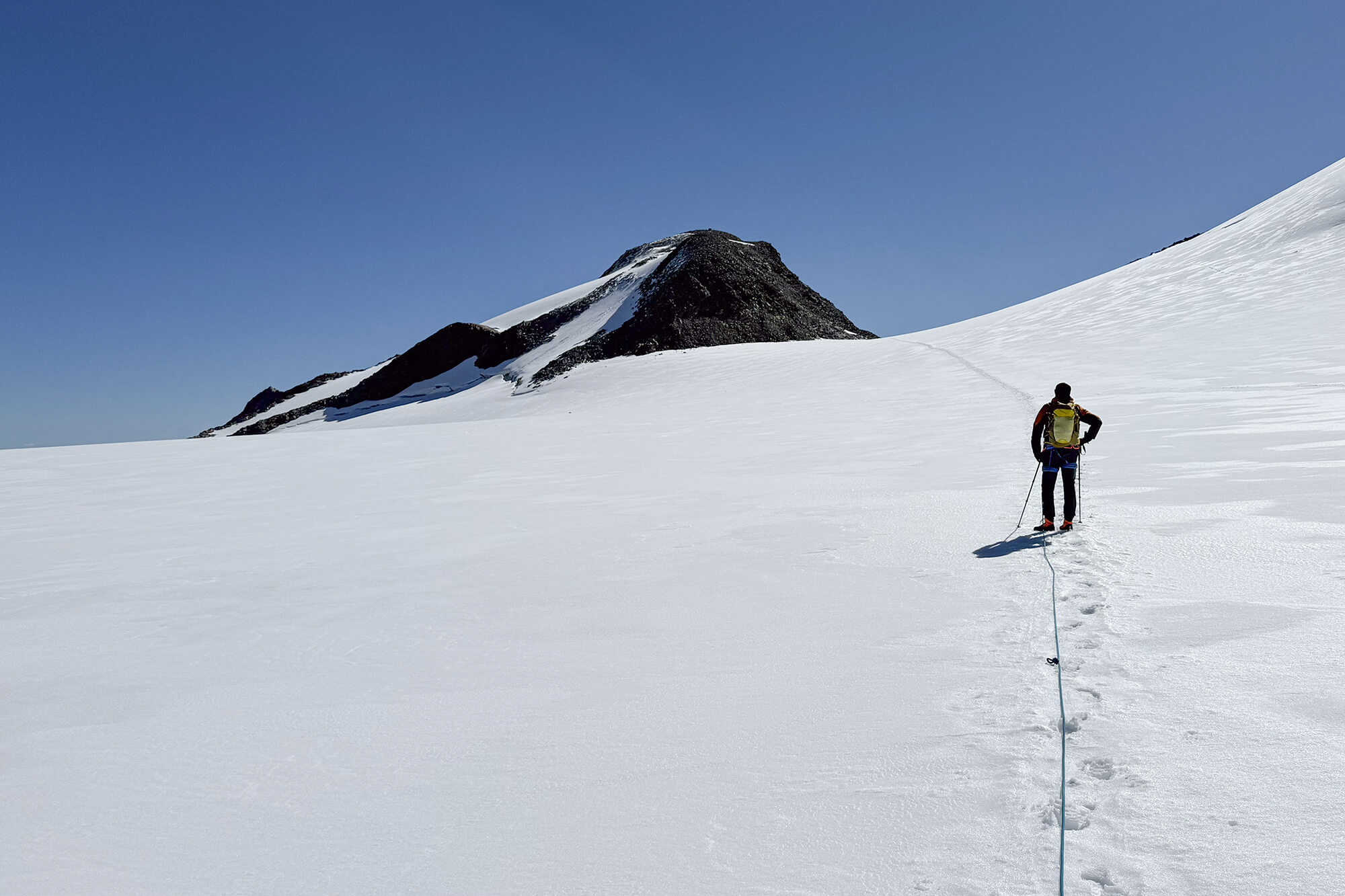 Normalerweise beginnen wir die Tour am Schaufeljoch, das man mit den Seilbahnen am Stubaier Gletscher schnell erreicht. Von dort geht's anschließend zur Müllerhütte und am nächsten Tag über den Wilden Freiger wieder retour zur Mittelstation Fernau. Ohne Seilbahnunterstützung und Müllerhütte - beide Betriebe haben erst kürzlich geschlossen - bleiben das Becherhaus und ein Aufstieg zu ihm vom Tal aus eine Option, die wir bei vielversprechender Wetterprognose wählen.